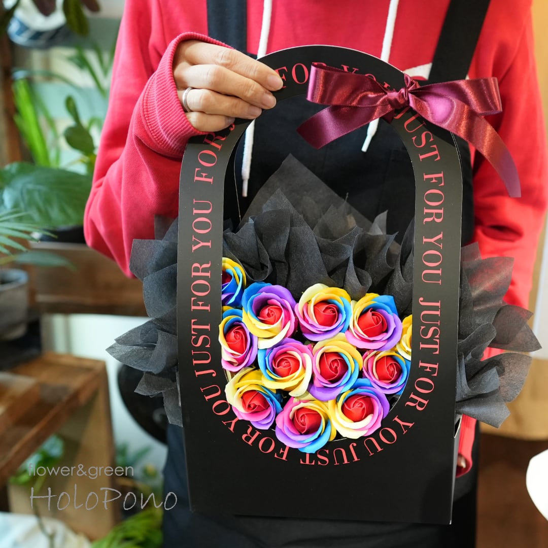 ・レインボーカラーのローズで華やか&ポジティブな印象