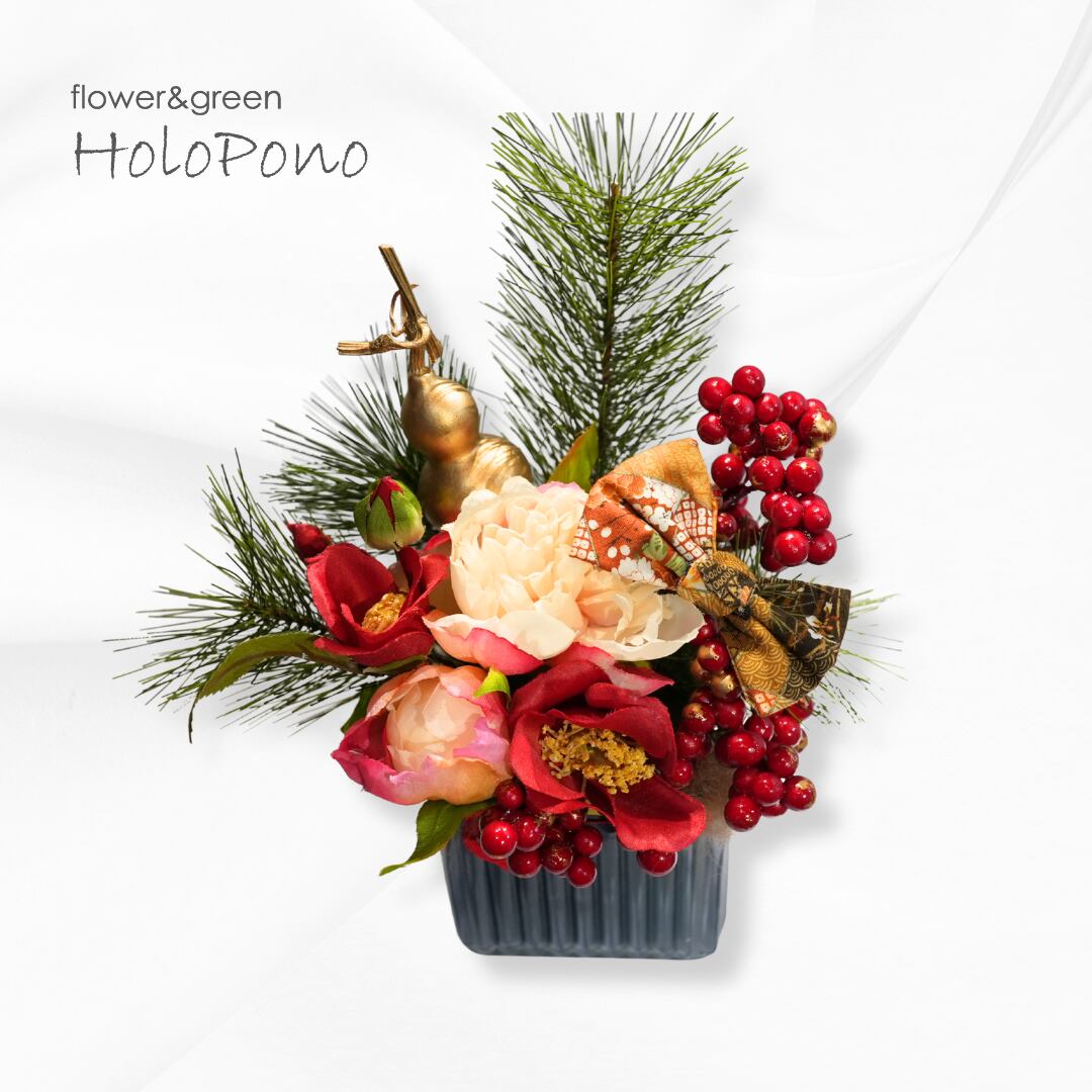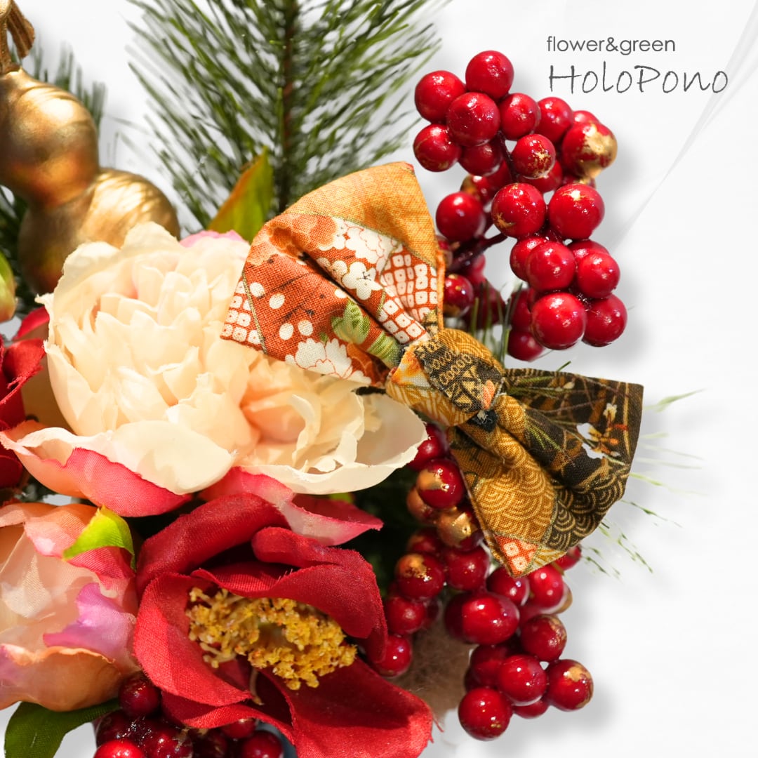 お正月を華やかに彩る、上品でモダンなアーティフィシャルフラワーアレンジメント。